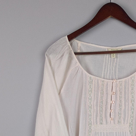 White Henley Long Sleeve Top