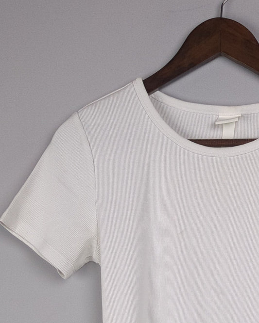 H&M White Ribbed T-shirt