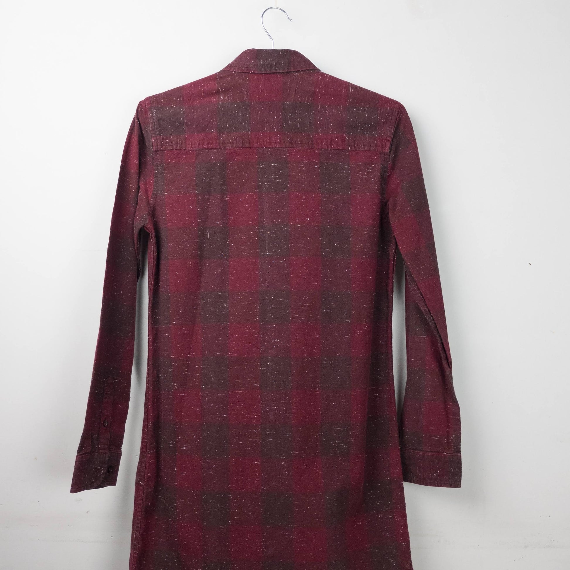 A long-sleeve burgundy shirt featuring a subtle speckled pattern, ideal for casual or semi-formal wear.