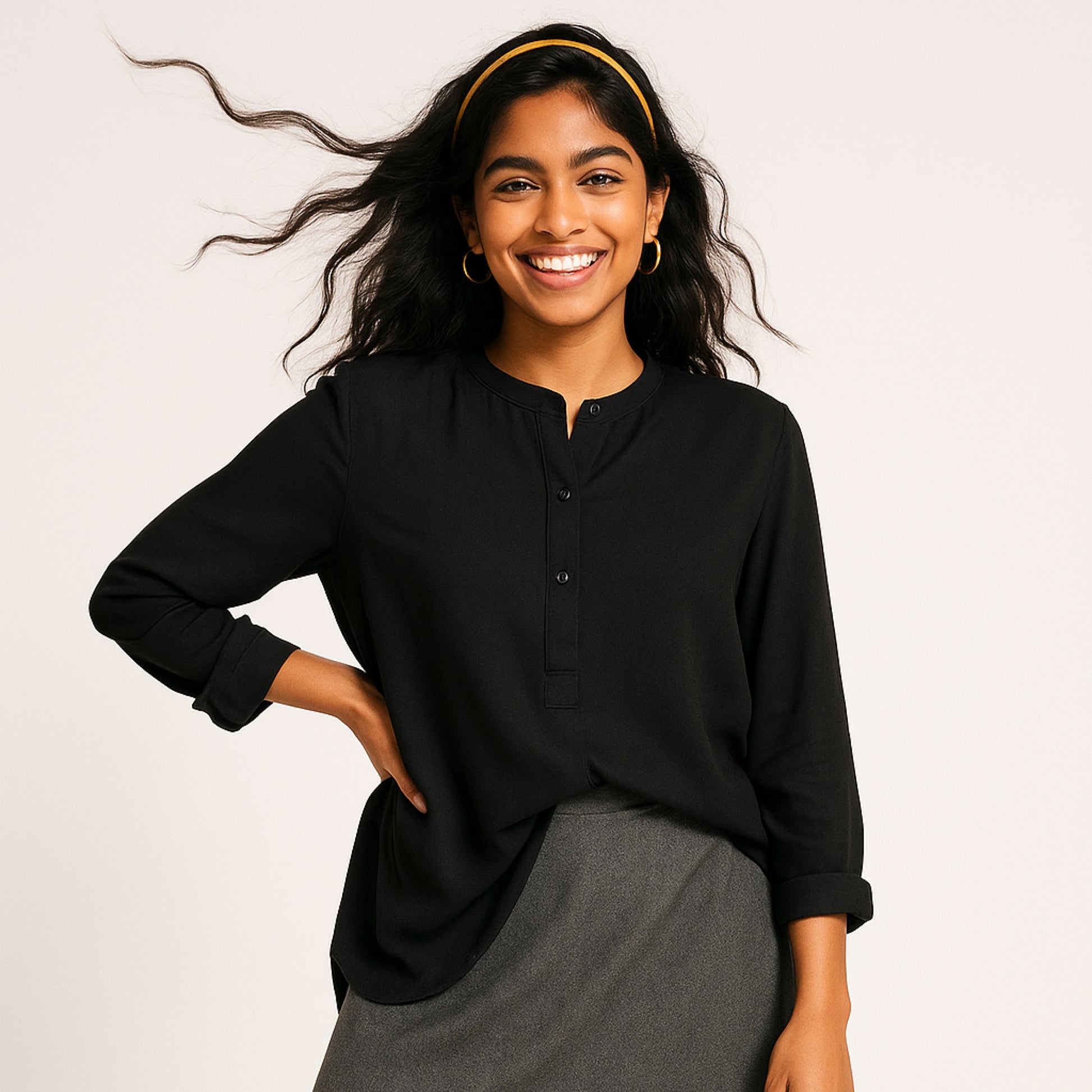 The model image is AI-generated and styled in a Prelo shirt to help you visualise the look. For accurate product details, please refer to the actual product images.