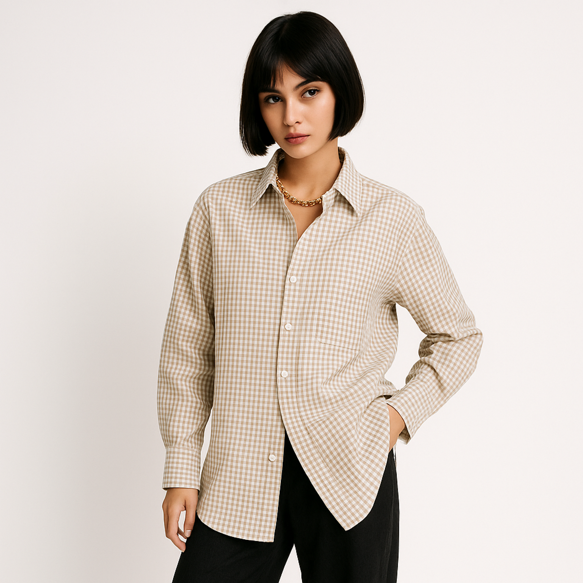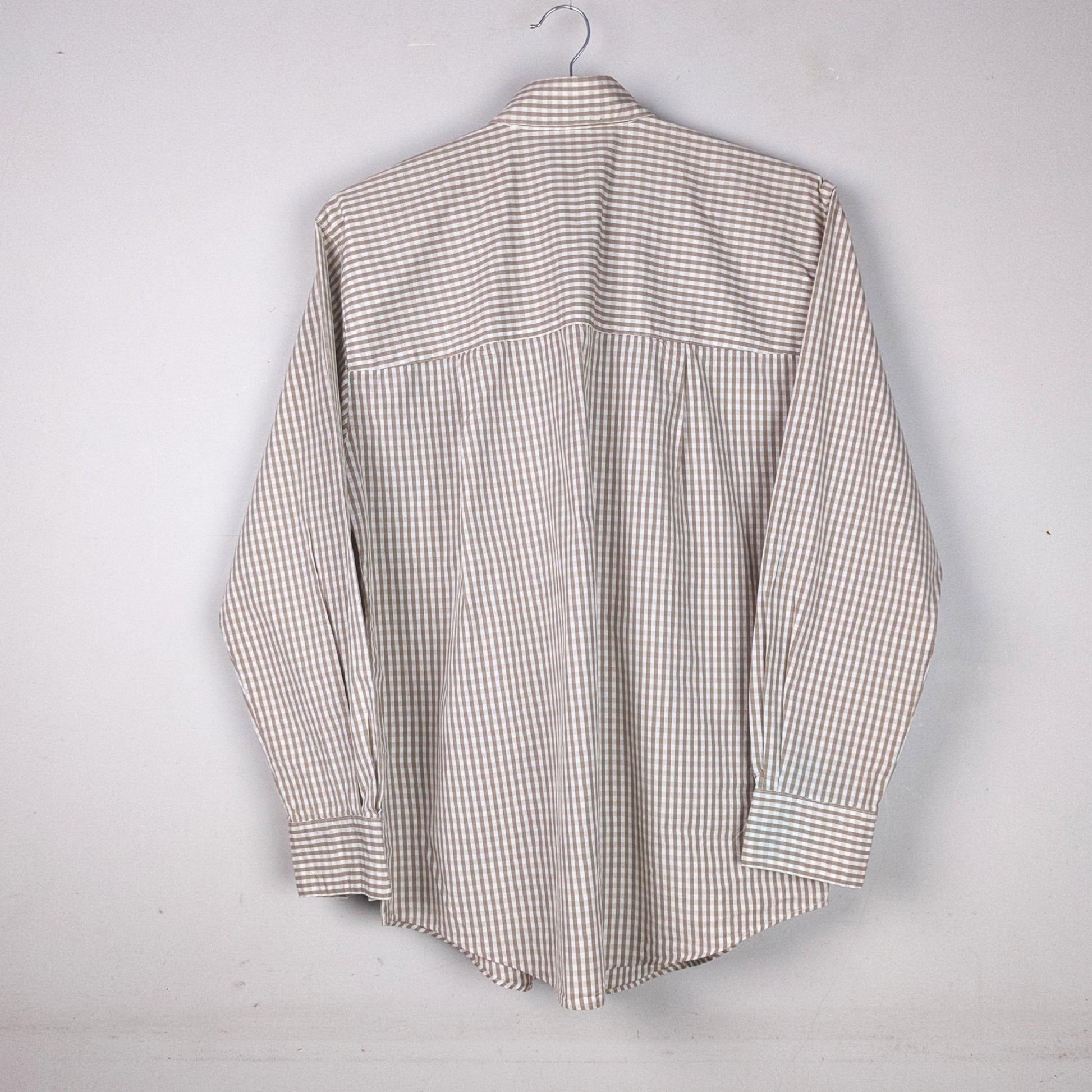 This long-sleeved button-down shirt features a classic plaid pattern, perfect for a smart-casual look.