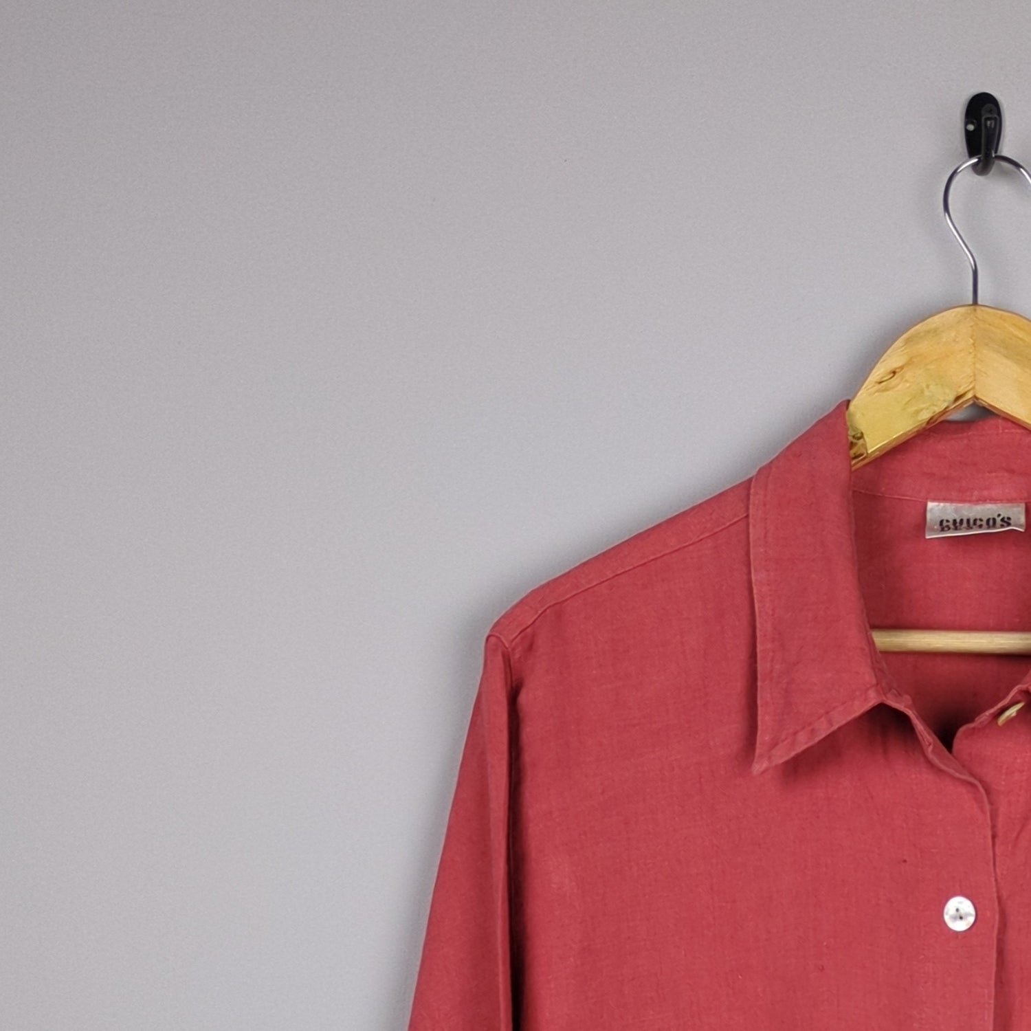 This coral button-down shirt is a versatile piece perfect for any casual occasion.