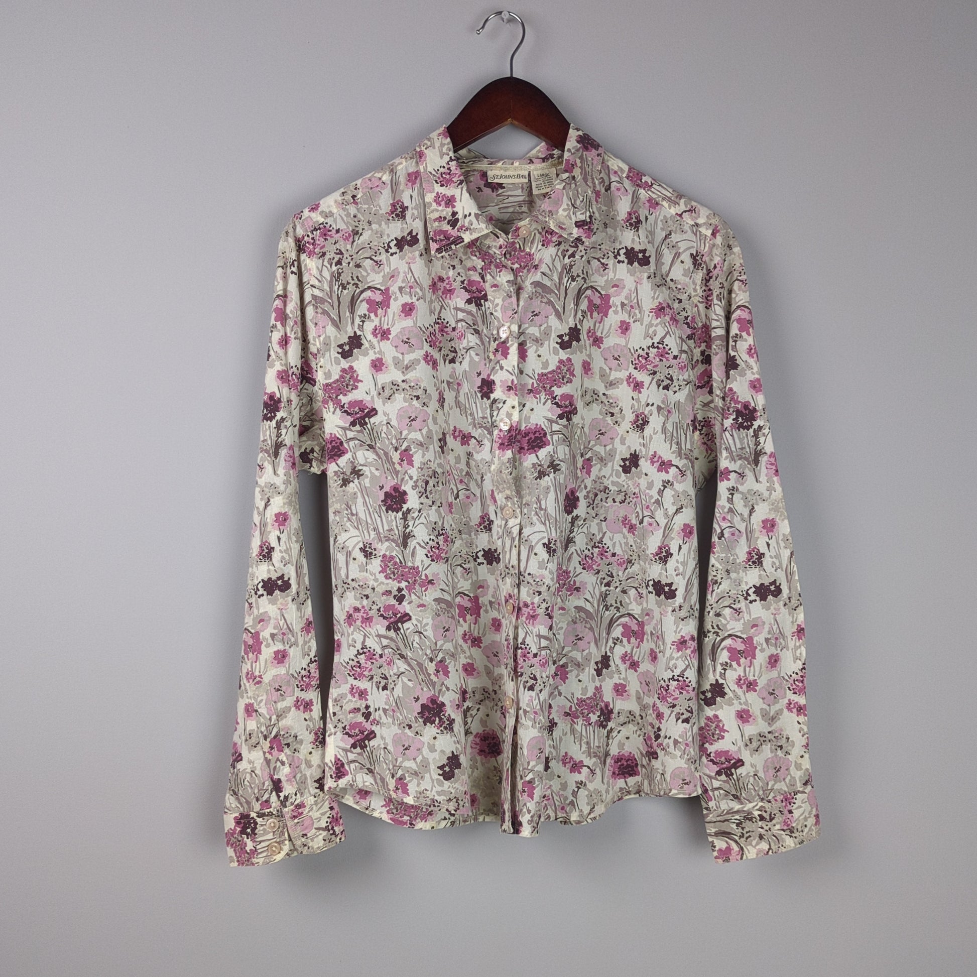 This button-down shirt features a delightful all-over floral print, perfect for adding a touch of spring to your wardrobe.