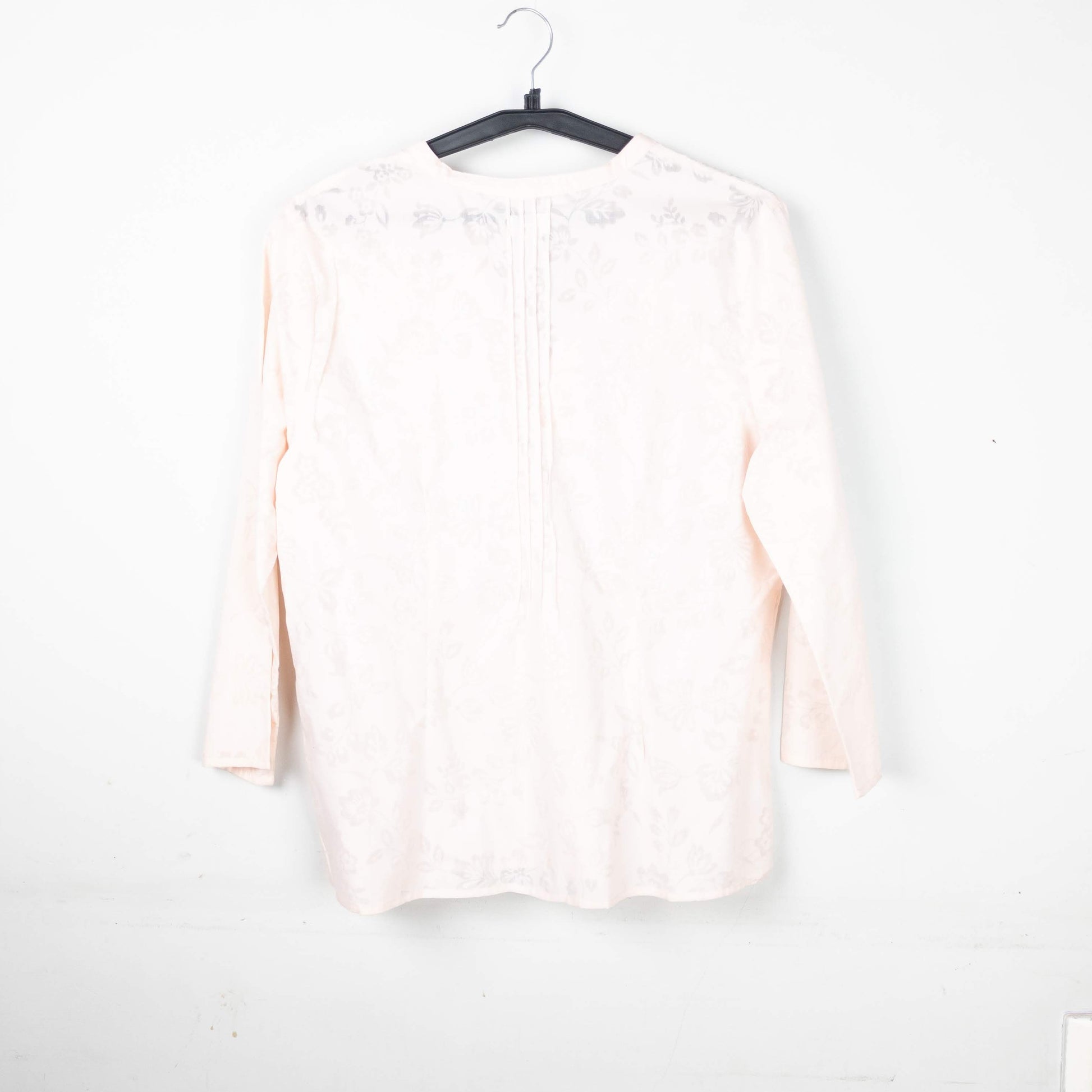 This pretty pink blouse has long sleeves and a delicate floral pattern, perfect for a casual yet elegant look.
