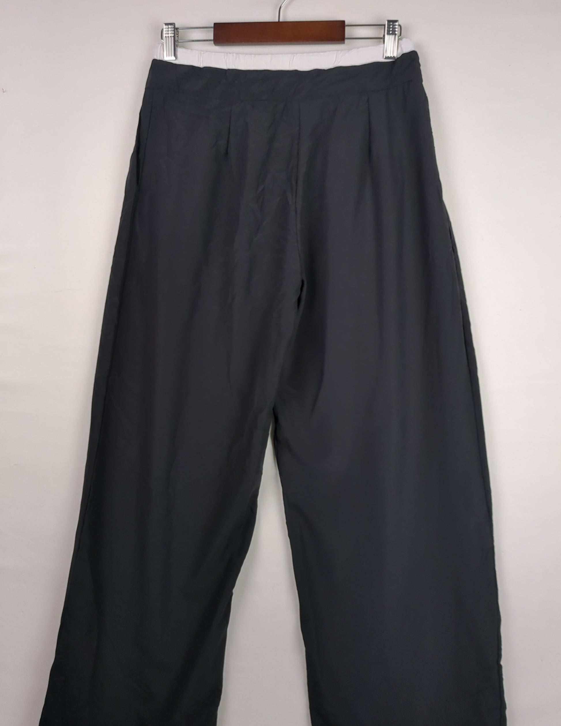 These sleek black pants feature a comfortable drawstring waist and relaxed fit.