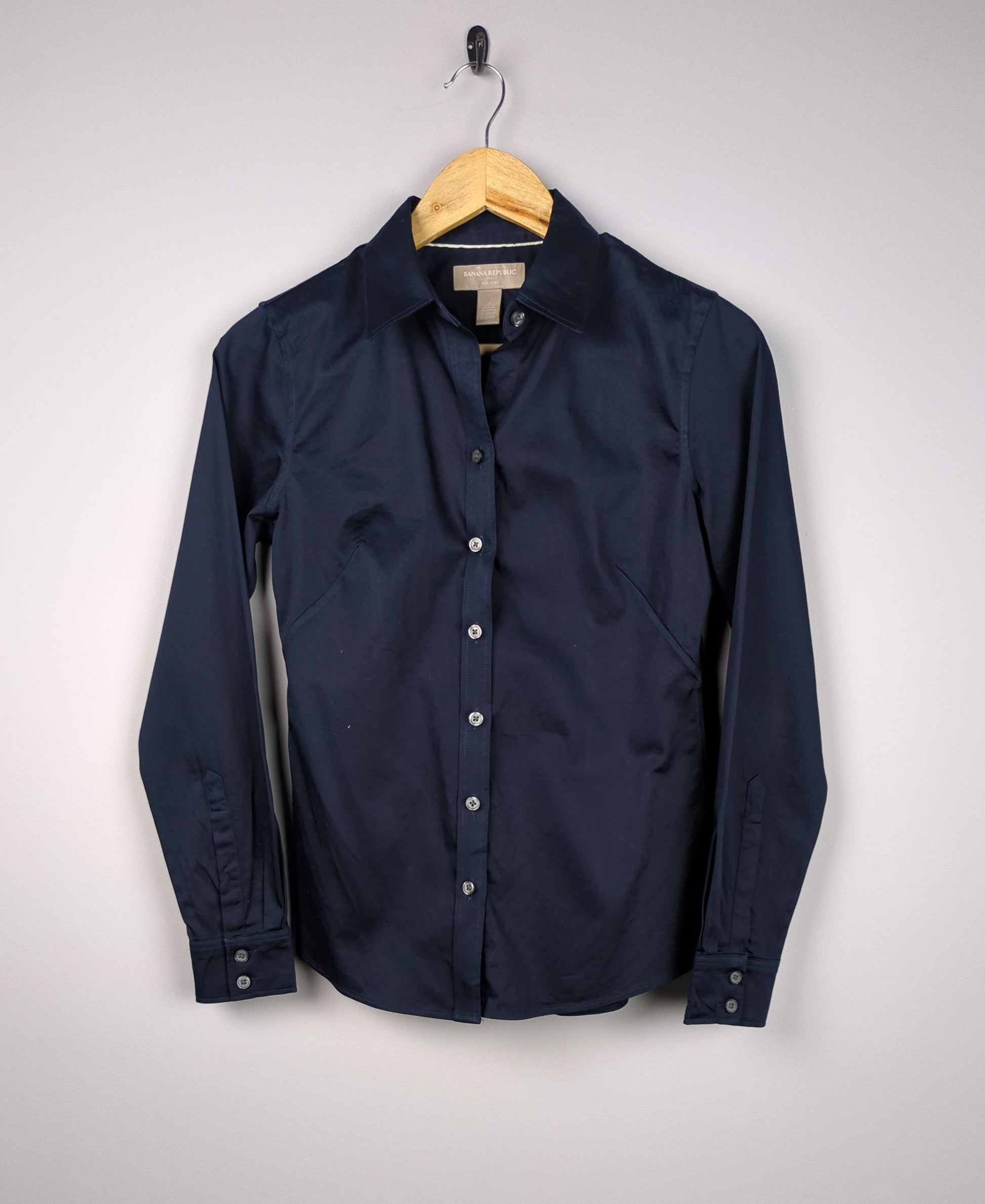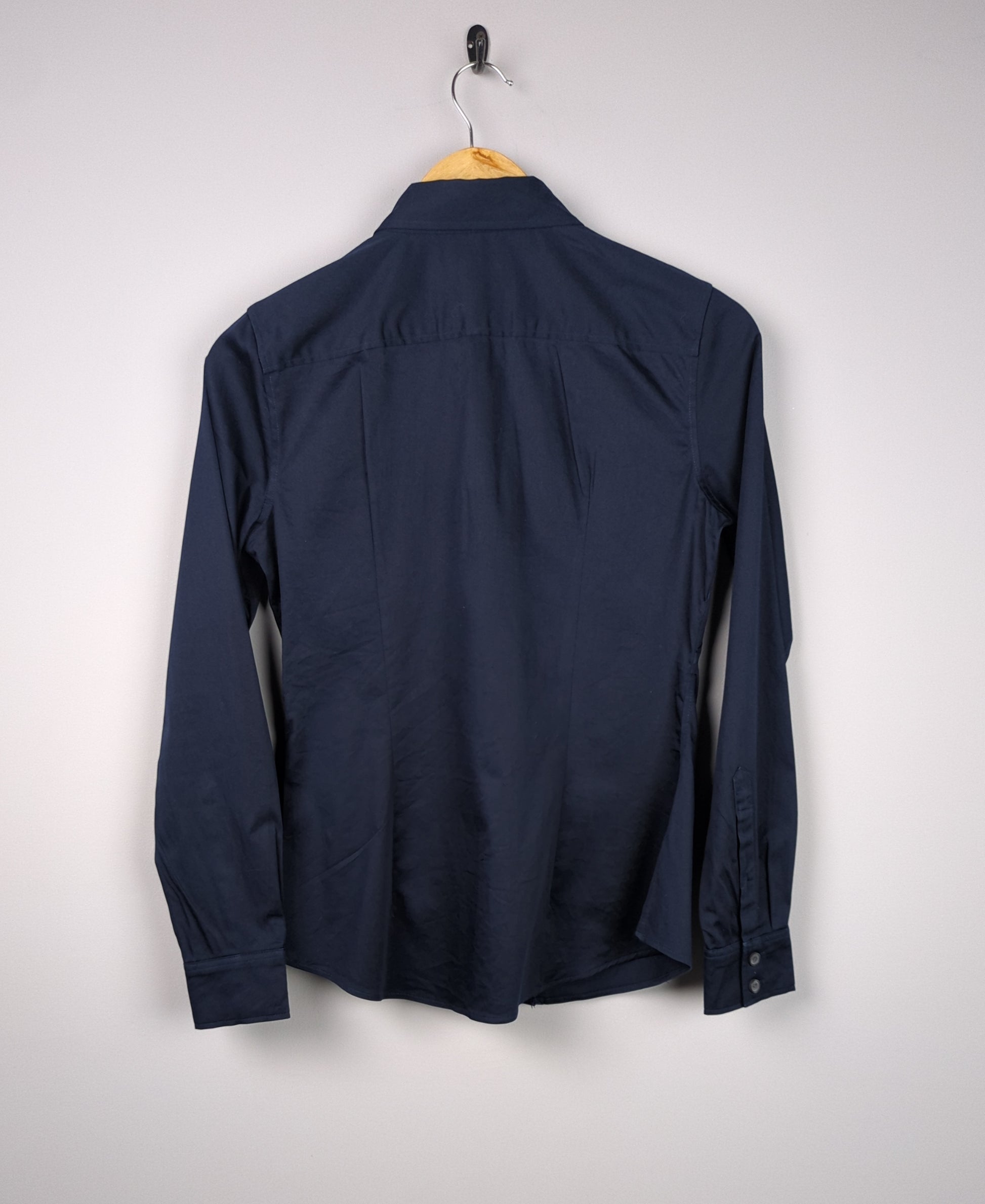 This navy blue button-down shirt is a versatile piece for any wardrobe.