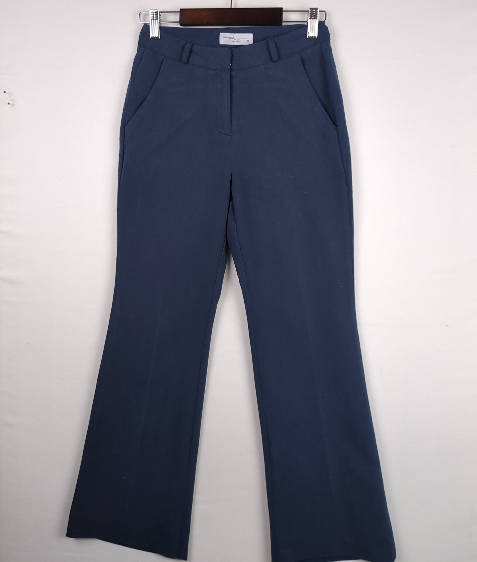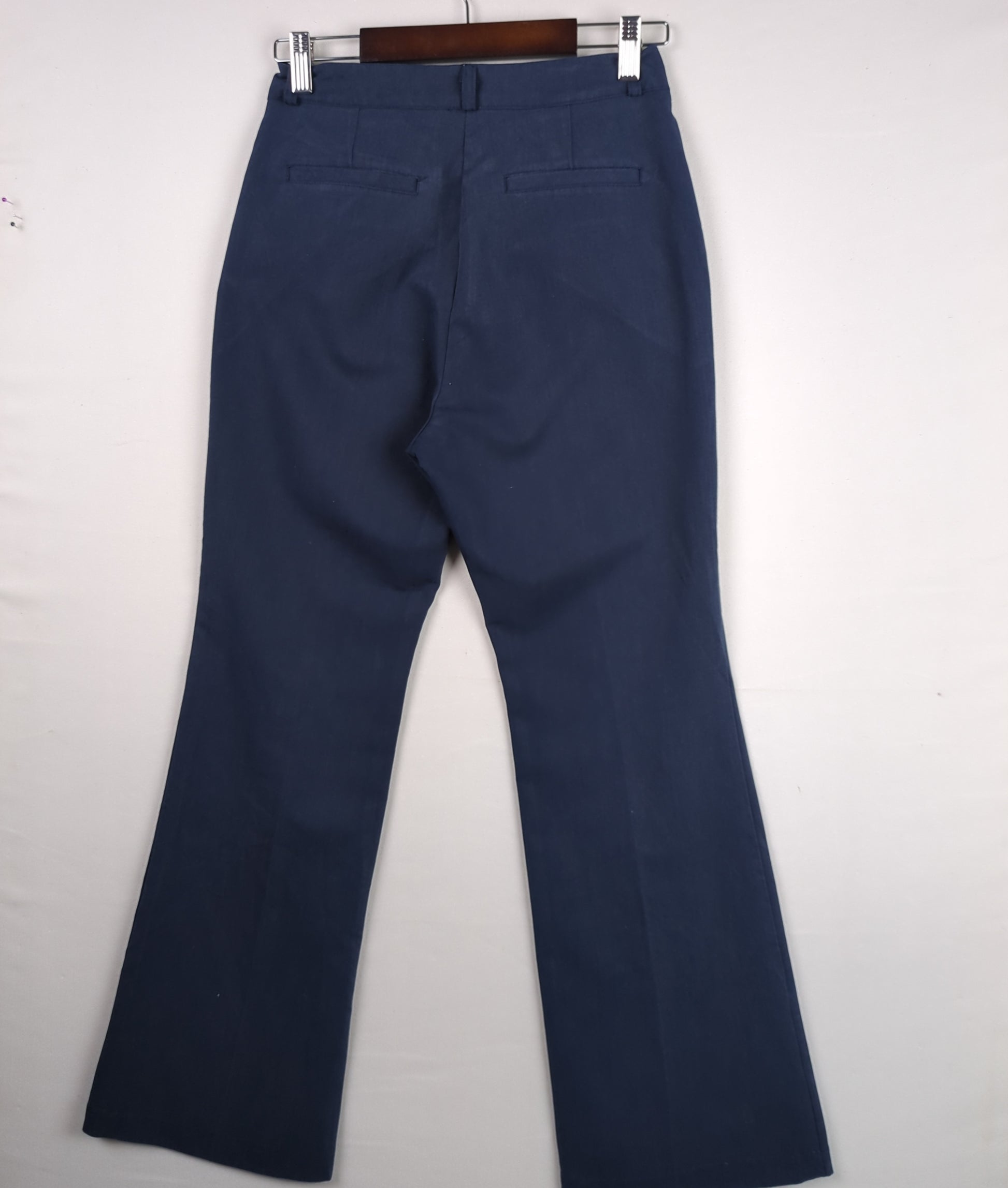 These navy blue pants feature a flattering bootcut silhouette and are perfect for a professional or casual look.
