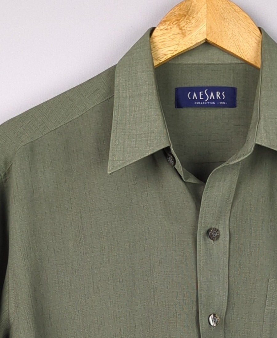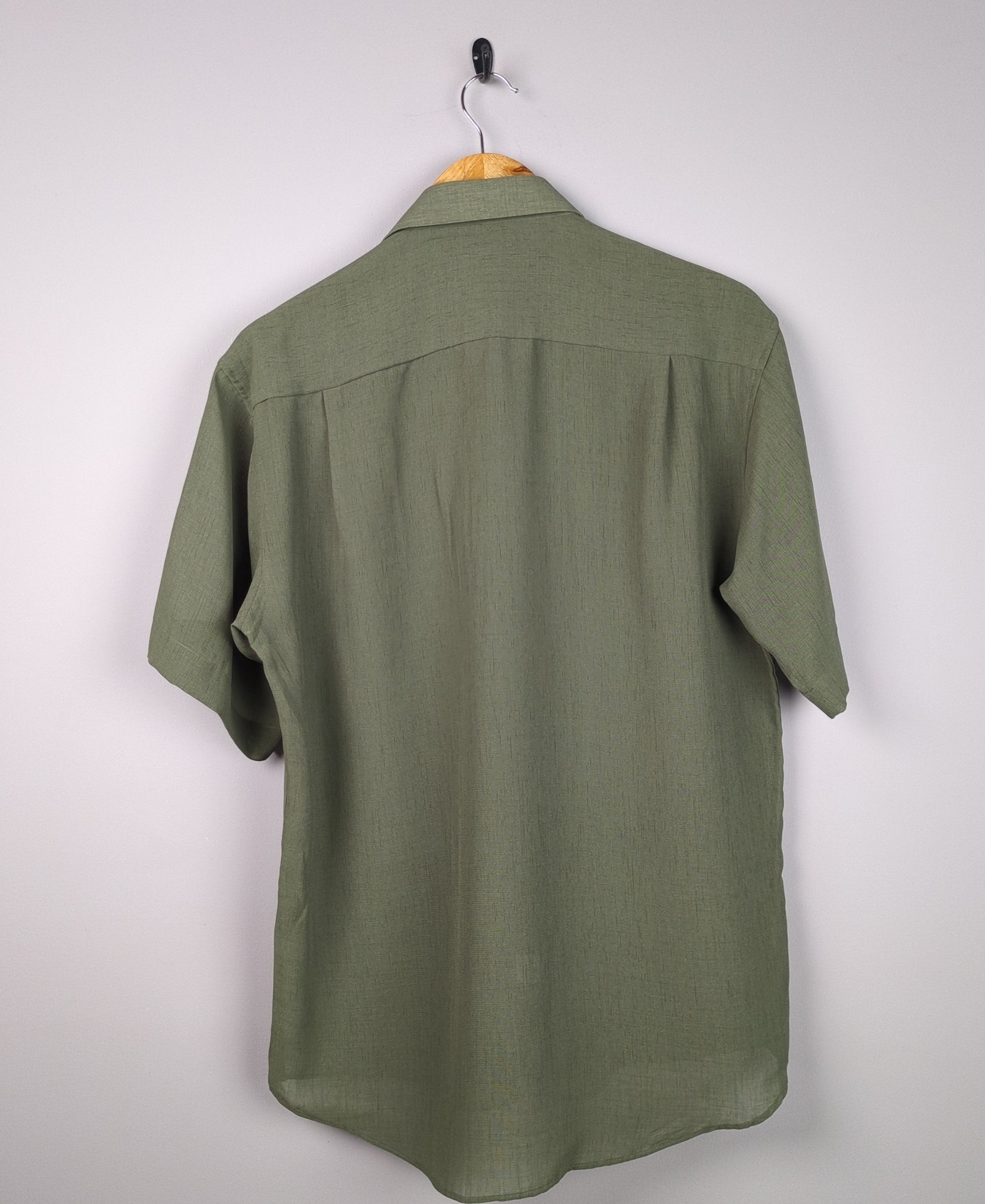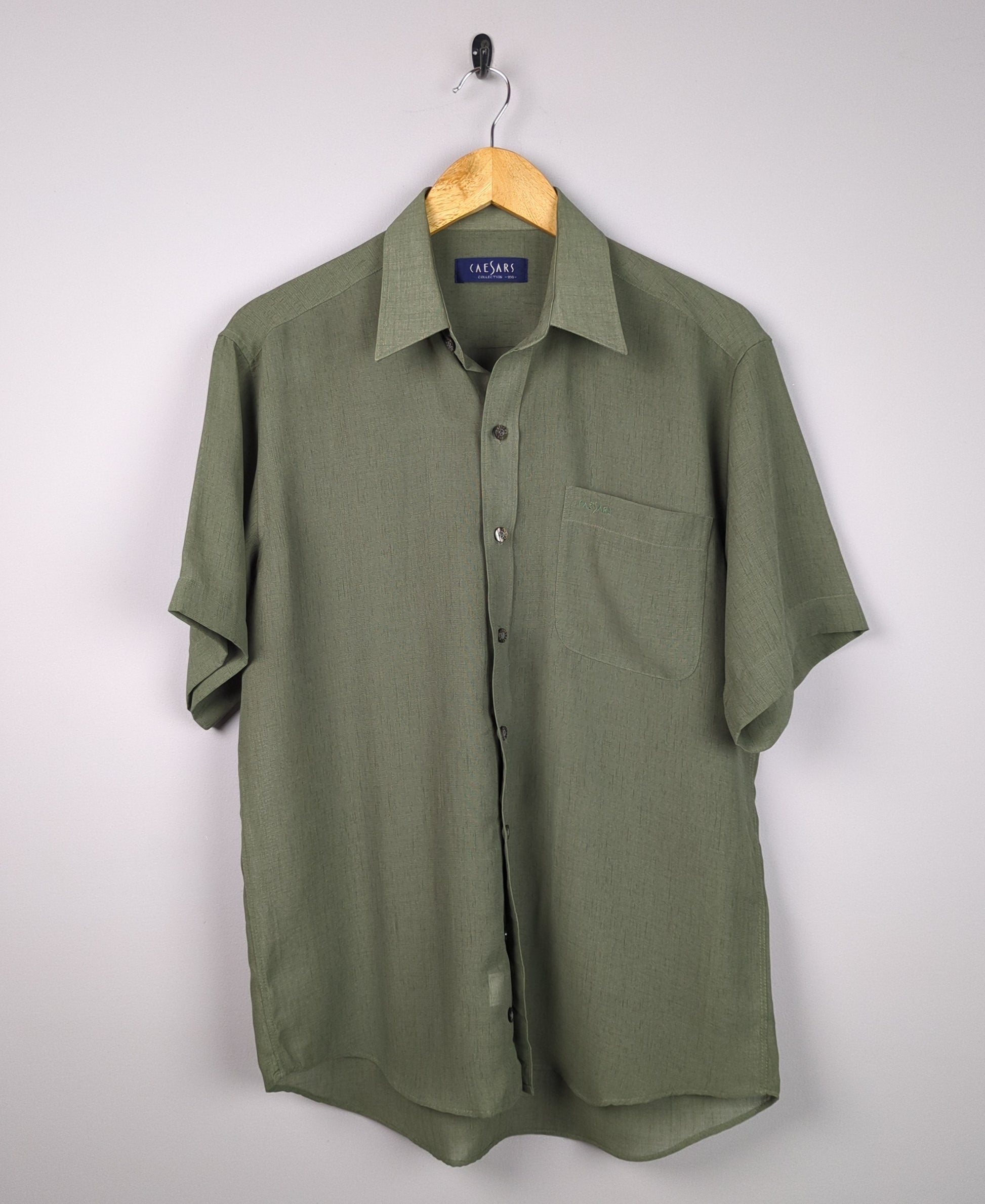 This olive green short sleeve button down shirt is perfect for a relaxed summer look.