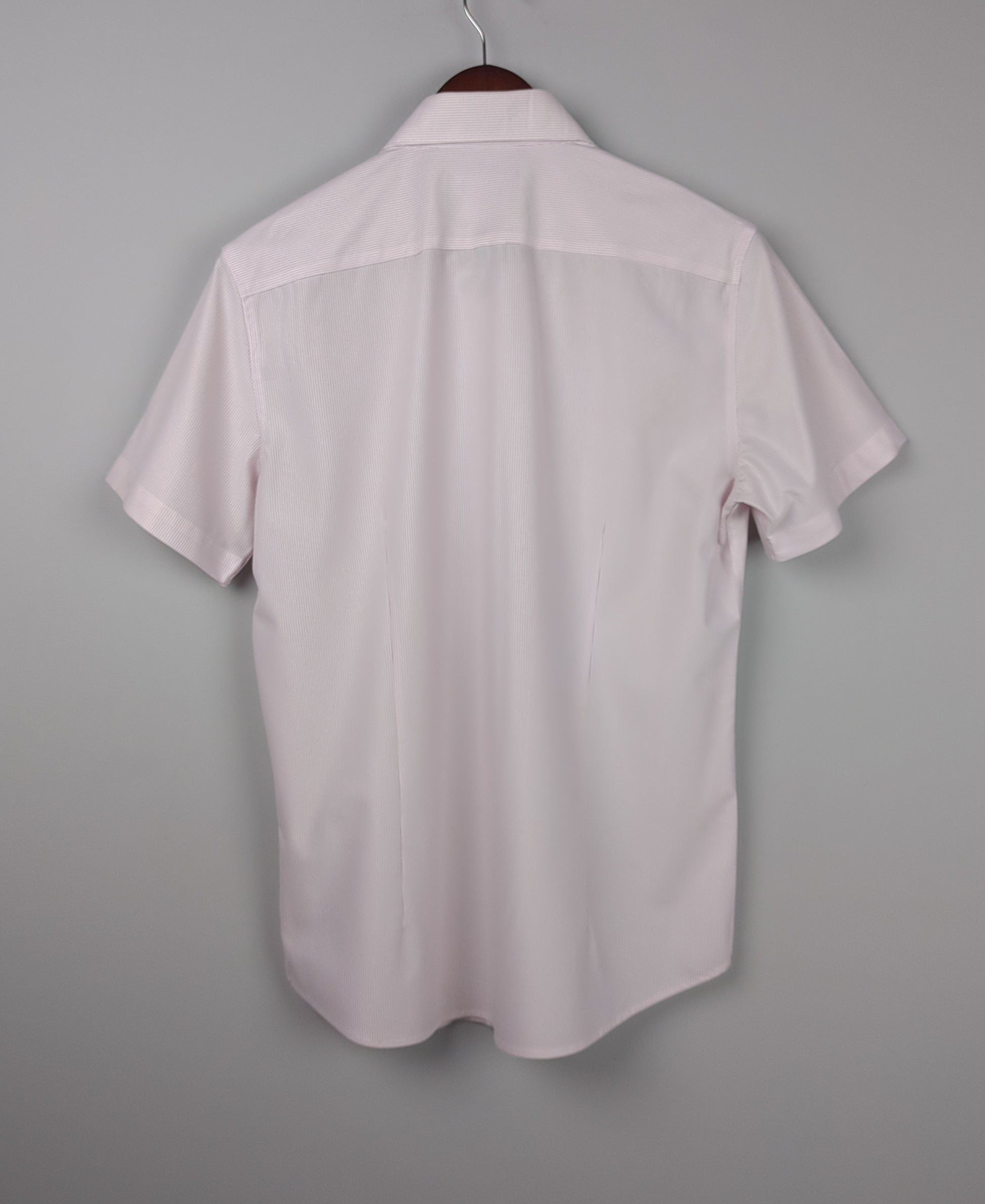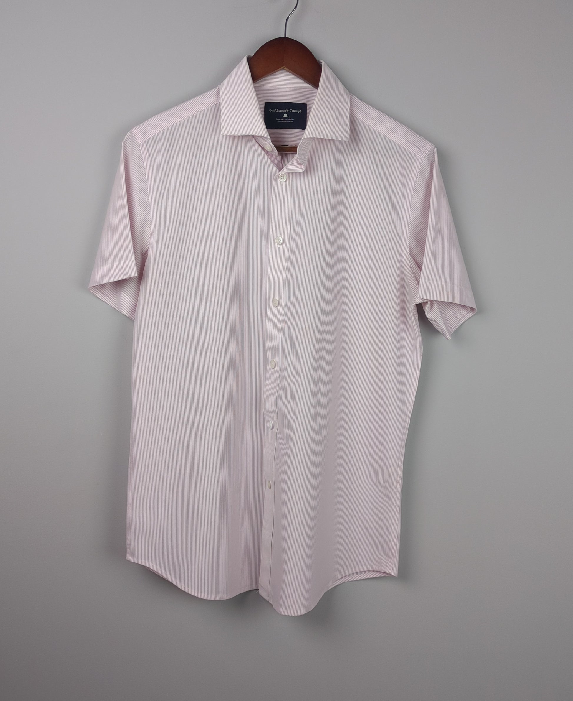 This pink and white striped shirt is perfect for a summer day.