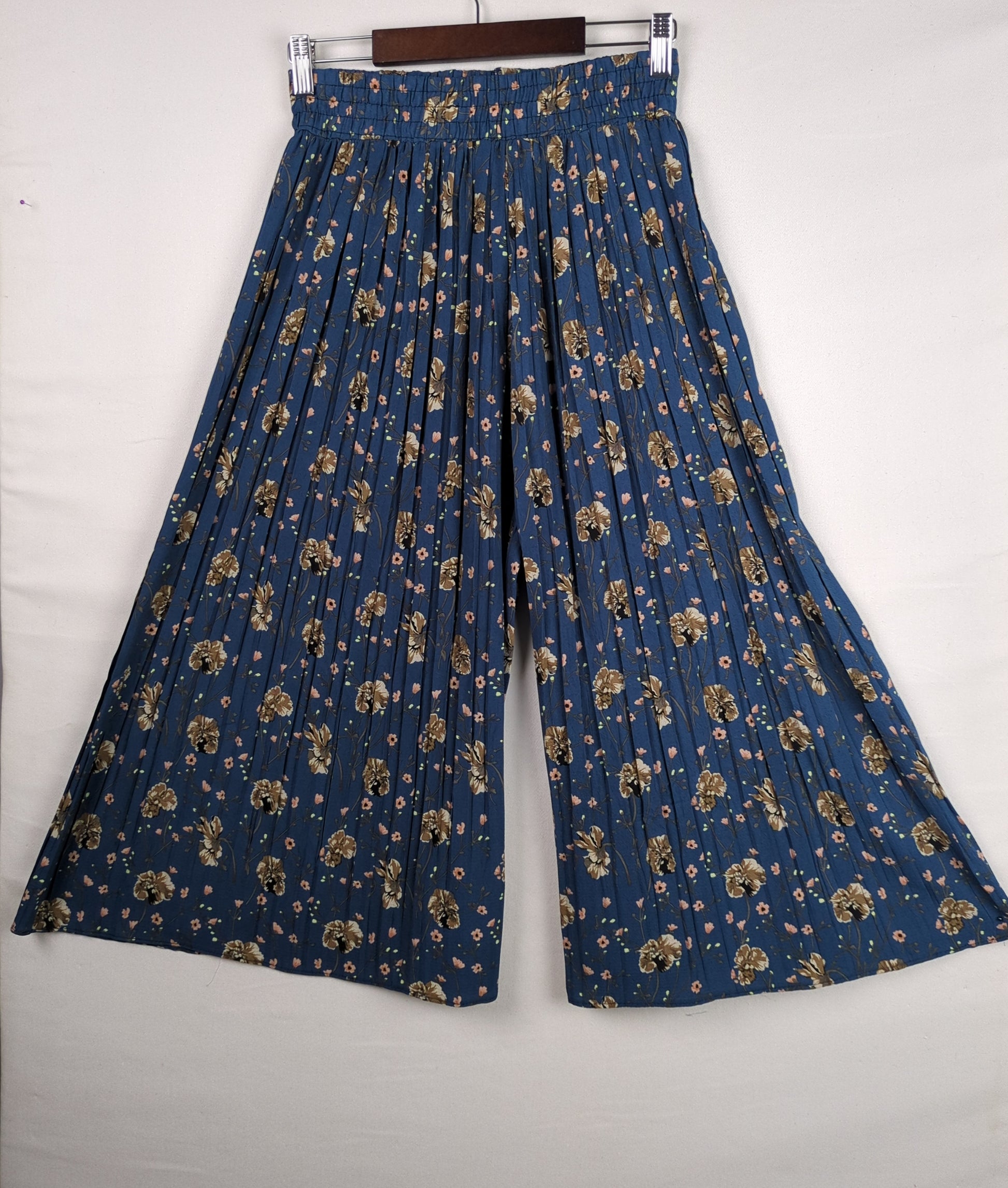 These pleated palazzo pants feature a beautiful floral print and are perfect for a summer day.