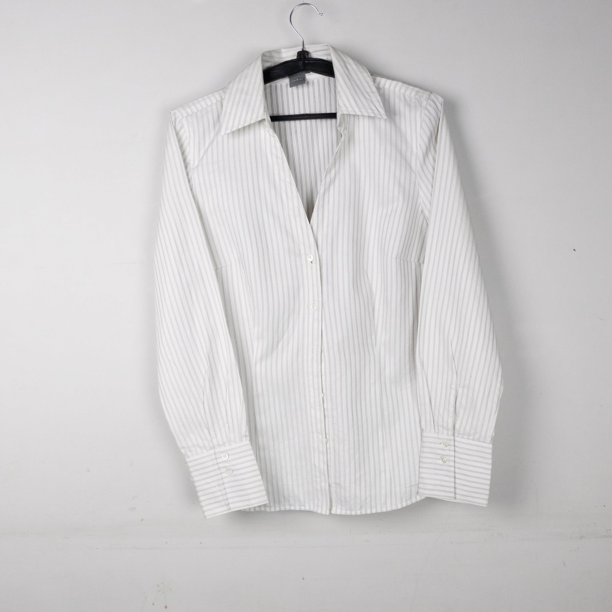 This long-sleeved, collared shirt features a subtle striped pattern and a button-up front, perfect for a smart casual look.