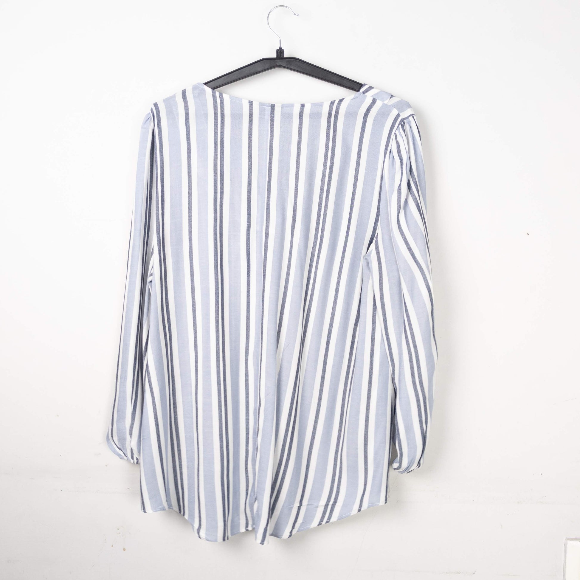 This is a fashionable long sleeve top with a striped pattern and a V-neckline.