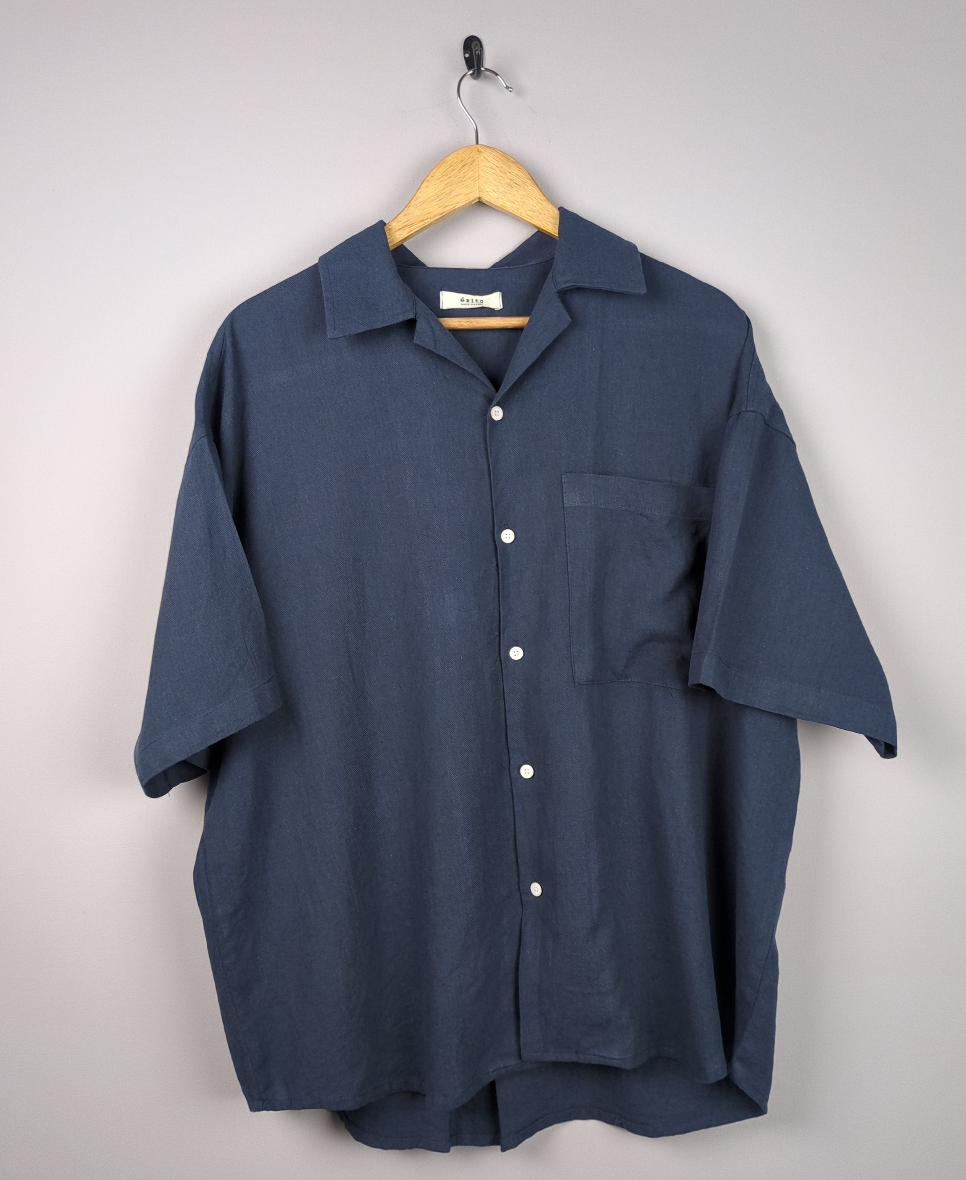 This relaxed-fit shirt features a classic collar and short sleeves, perfect for warm weather.
