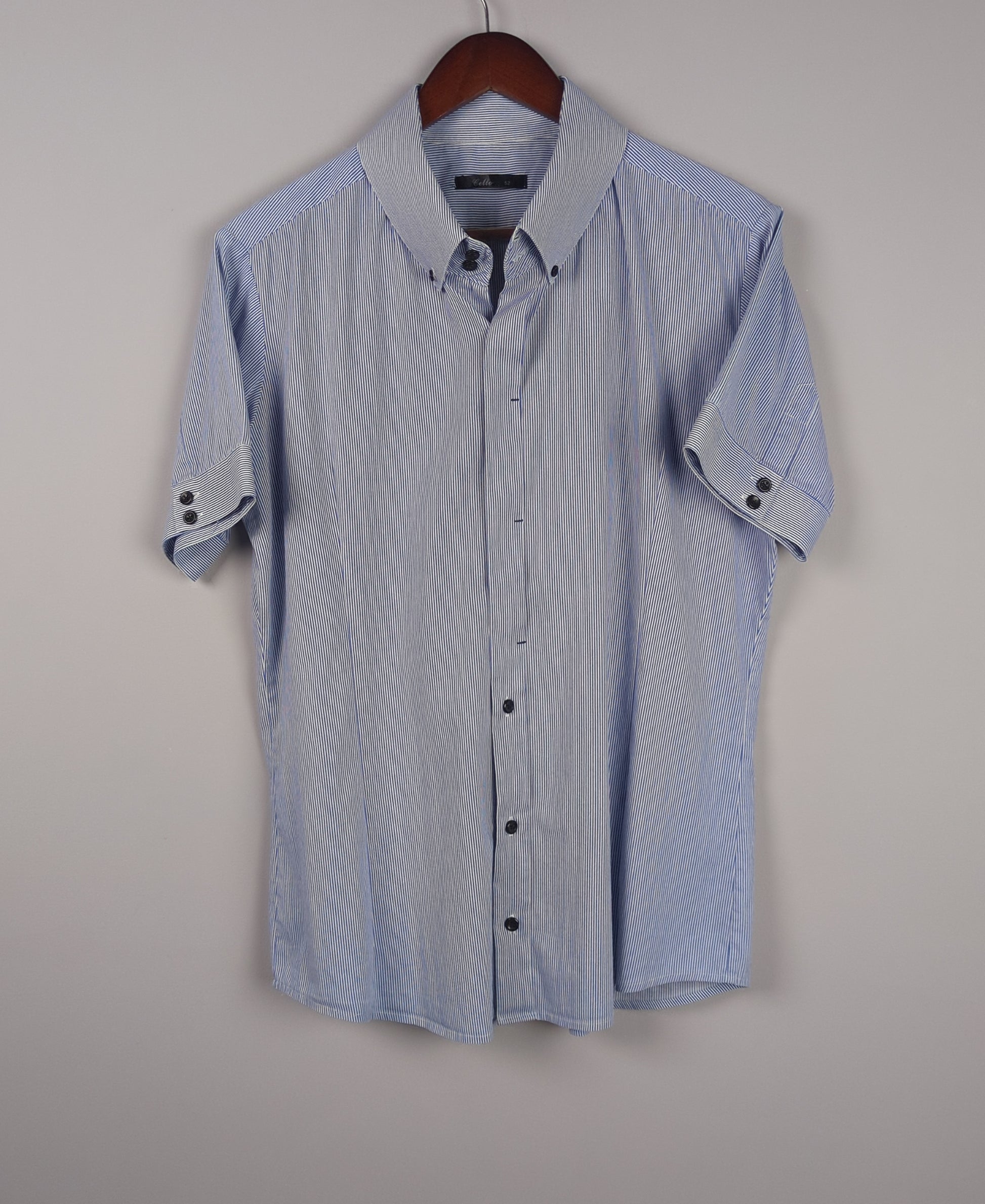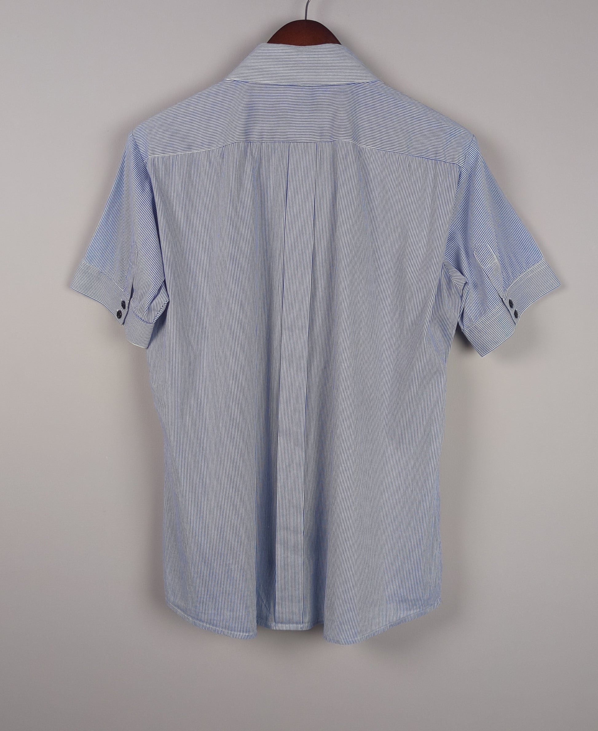 This classic short-sleeve shirt features a crisp blue and white striped pattern and a comfortable, relaxed fit.