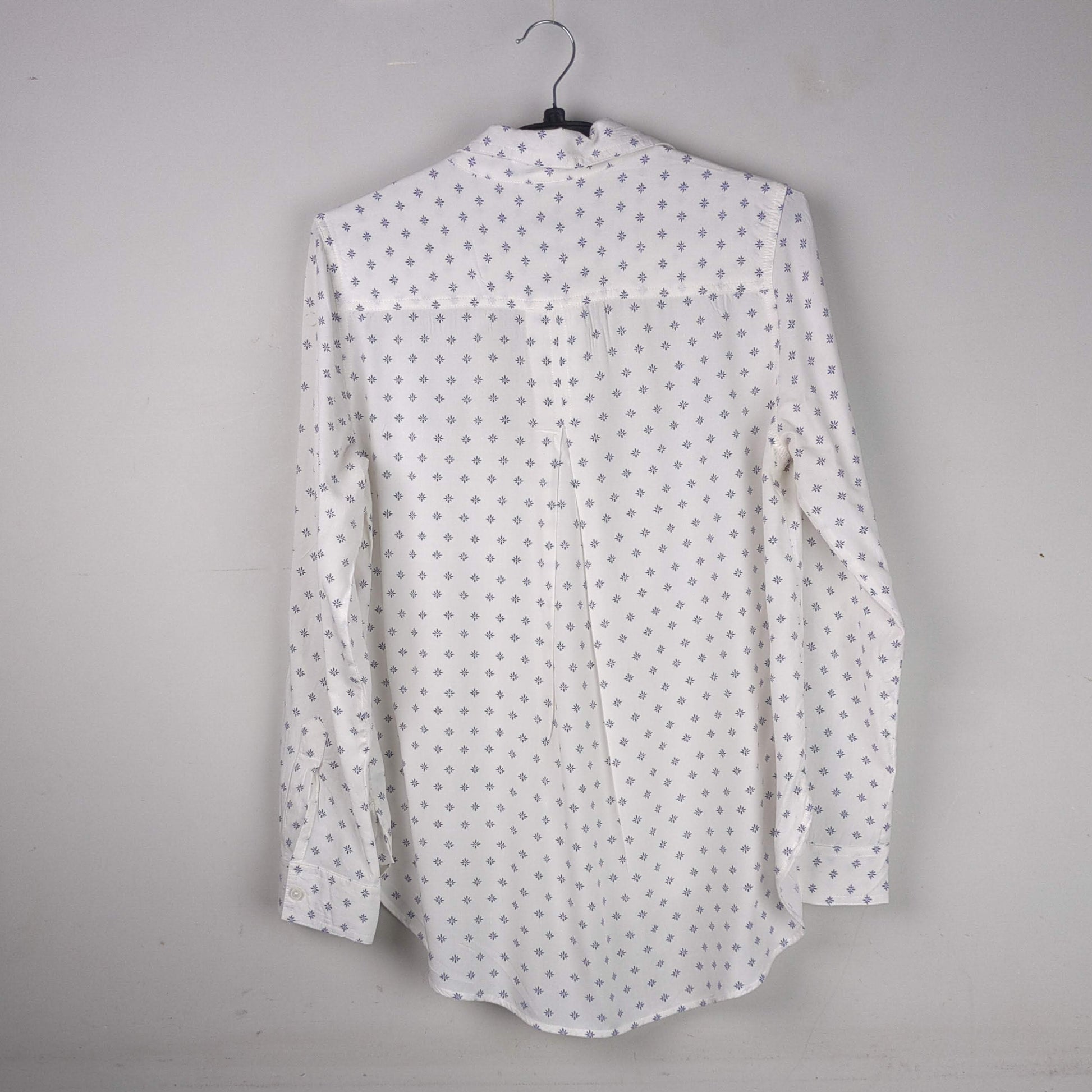 This is a classic button-down shirt with a delicate floral print.